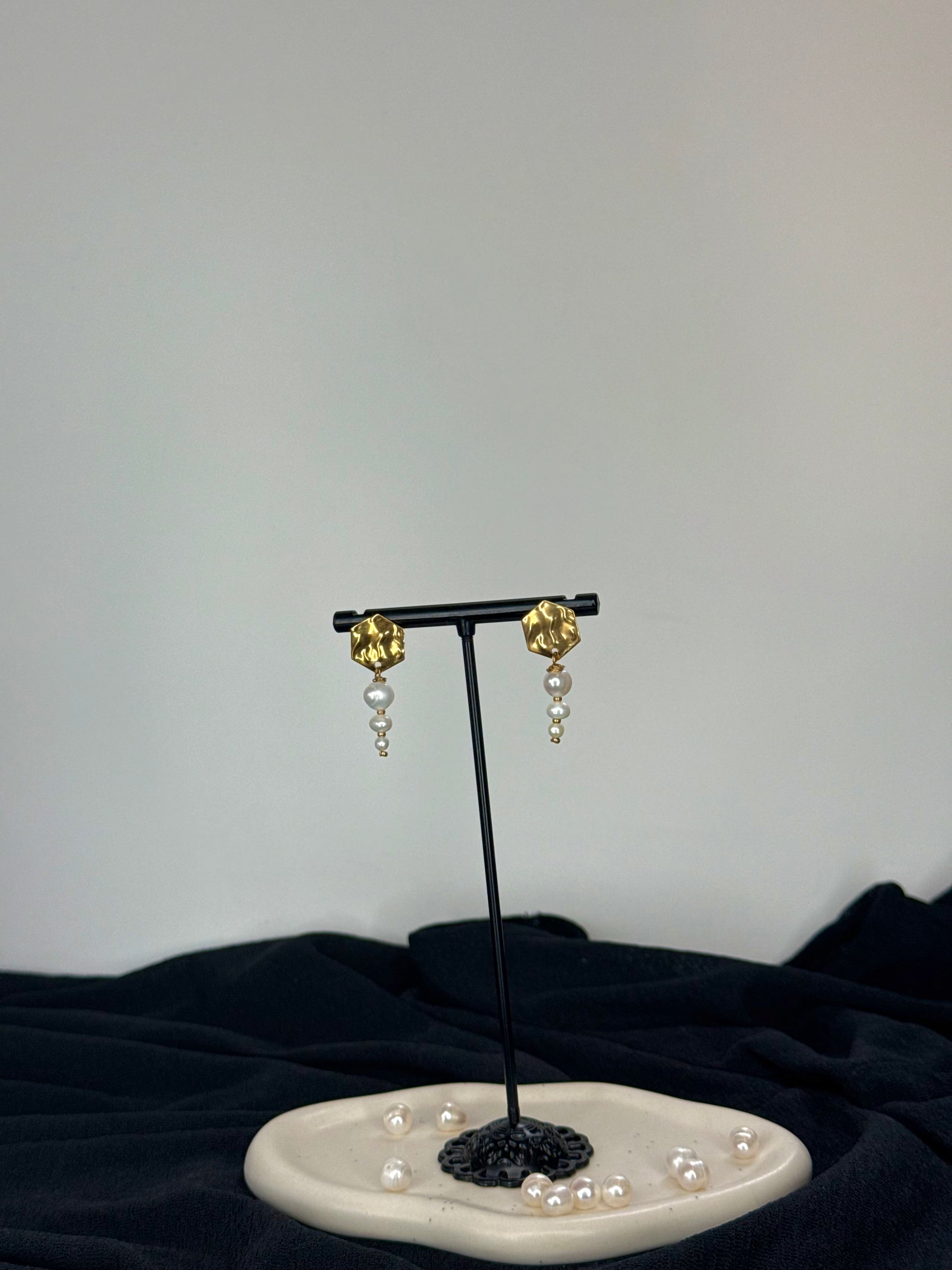 Boucles d’oreilles élégantes composées d’acier inoxydable doré et de perles d’eau douce.