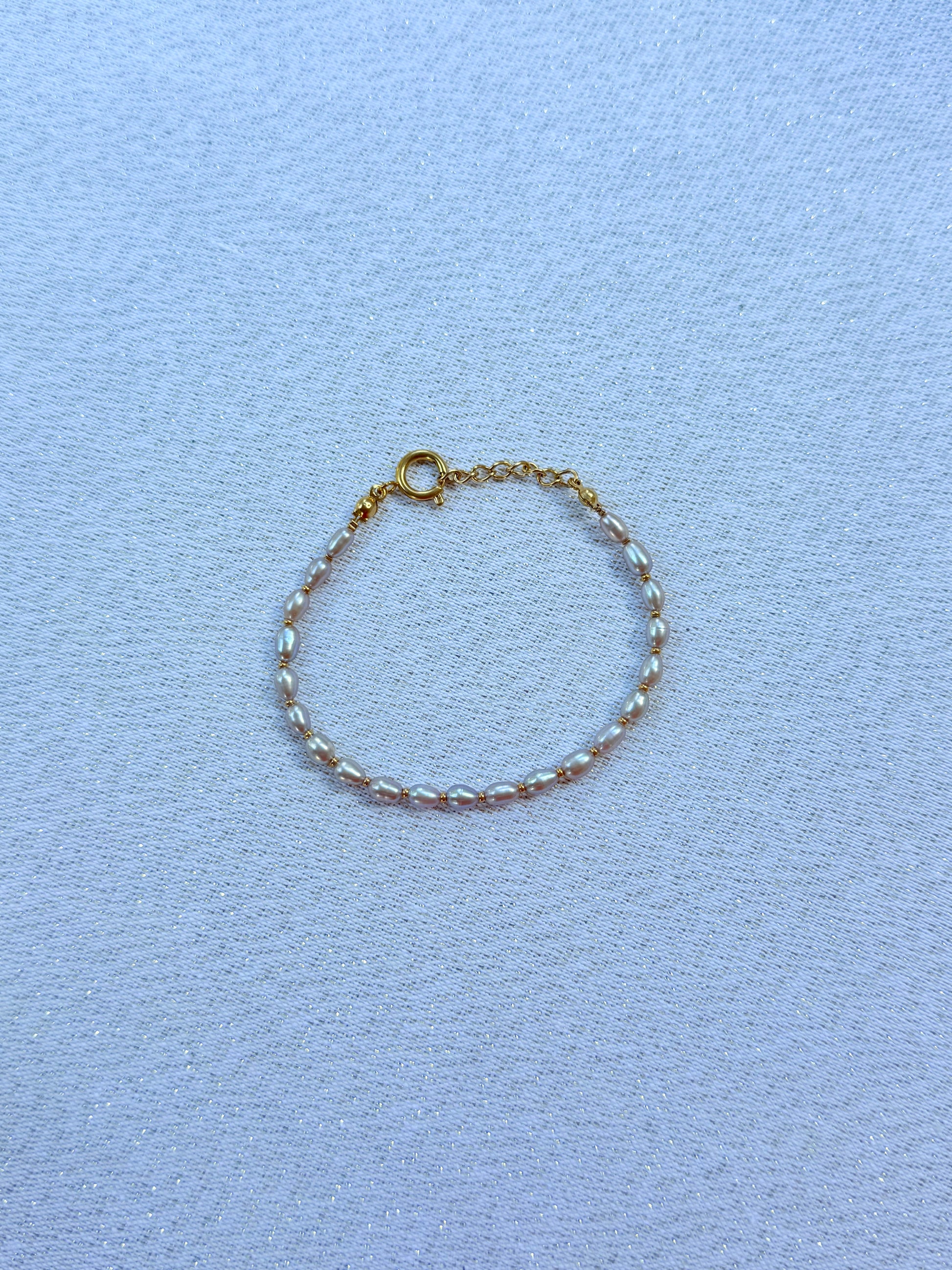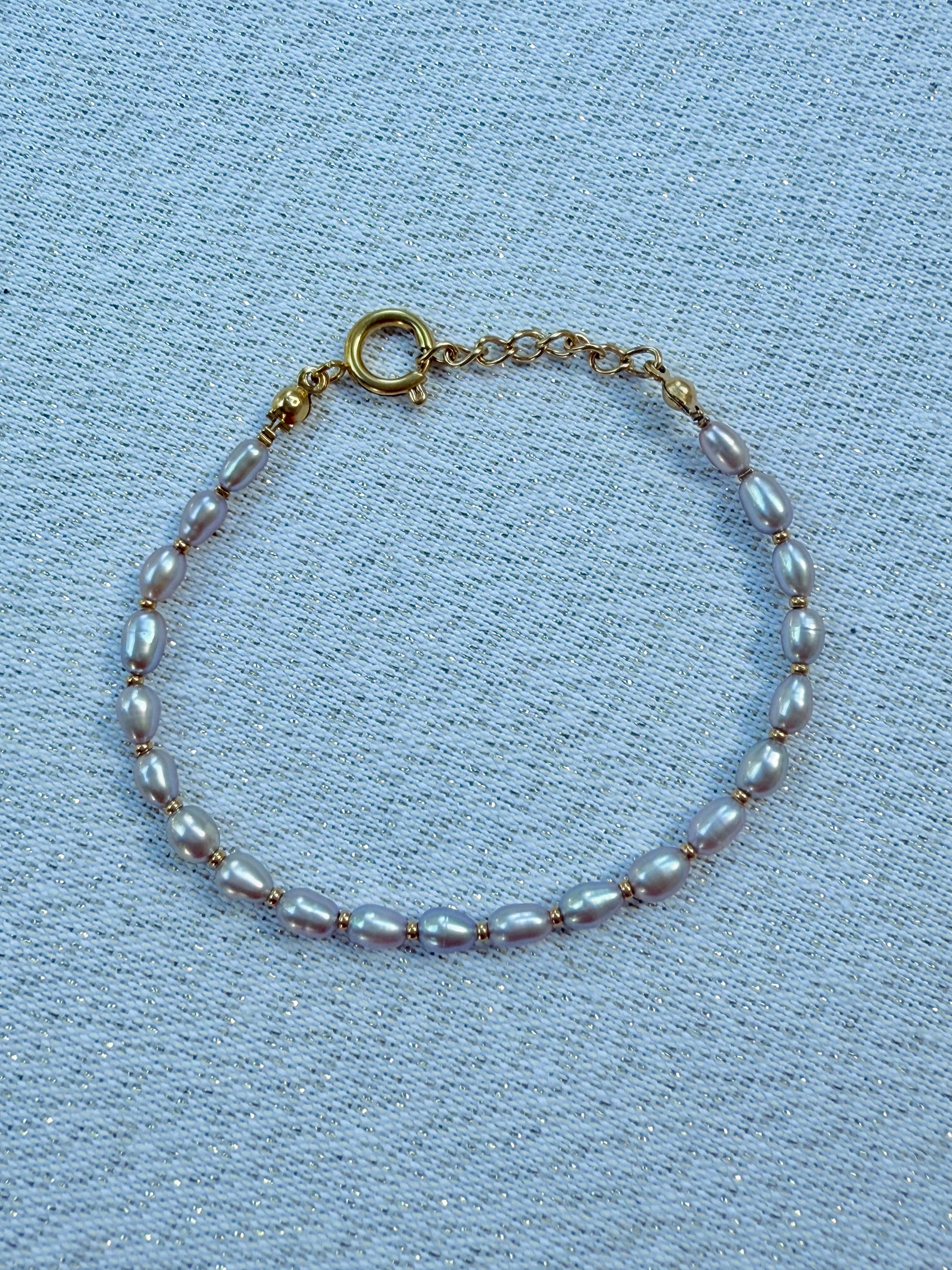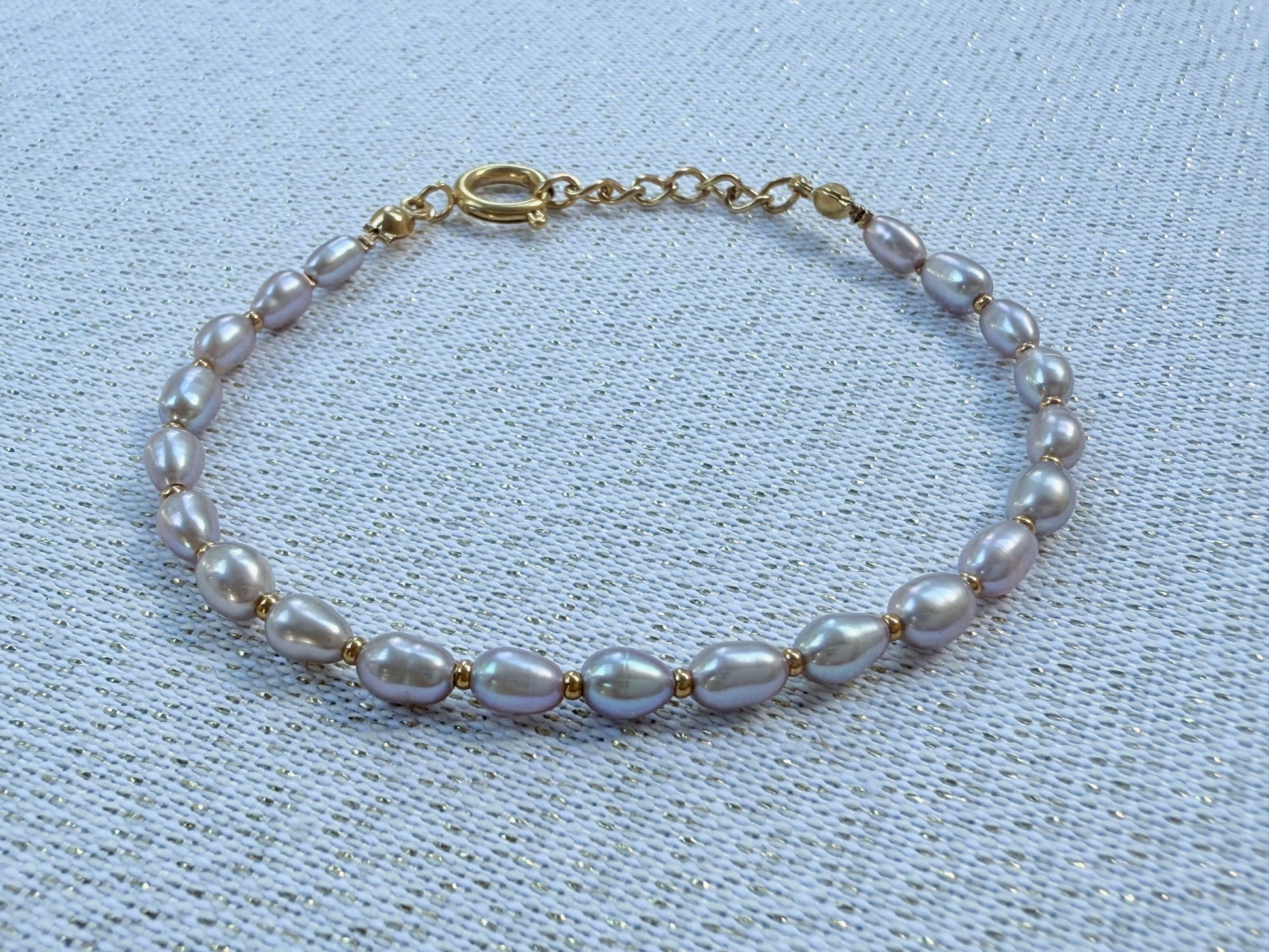 Un essentiel chic et intemporel : ce bracelet est composé de perles d’eau douce grise de haute qualité aux formes organiques, sublimées par de délicates perles dorées intercalaires.